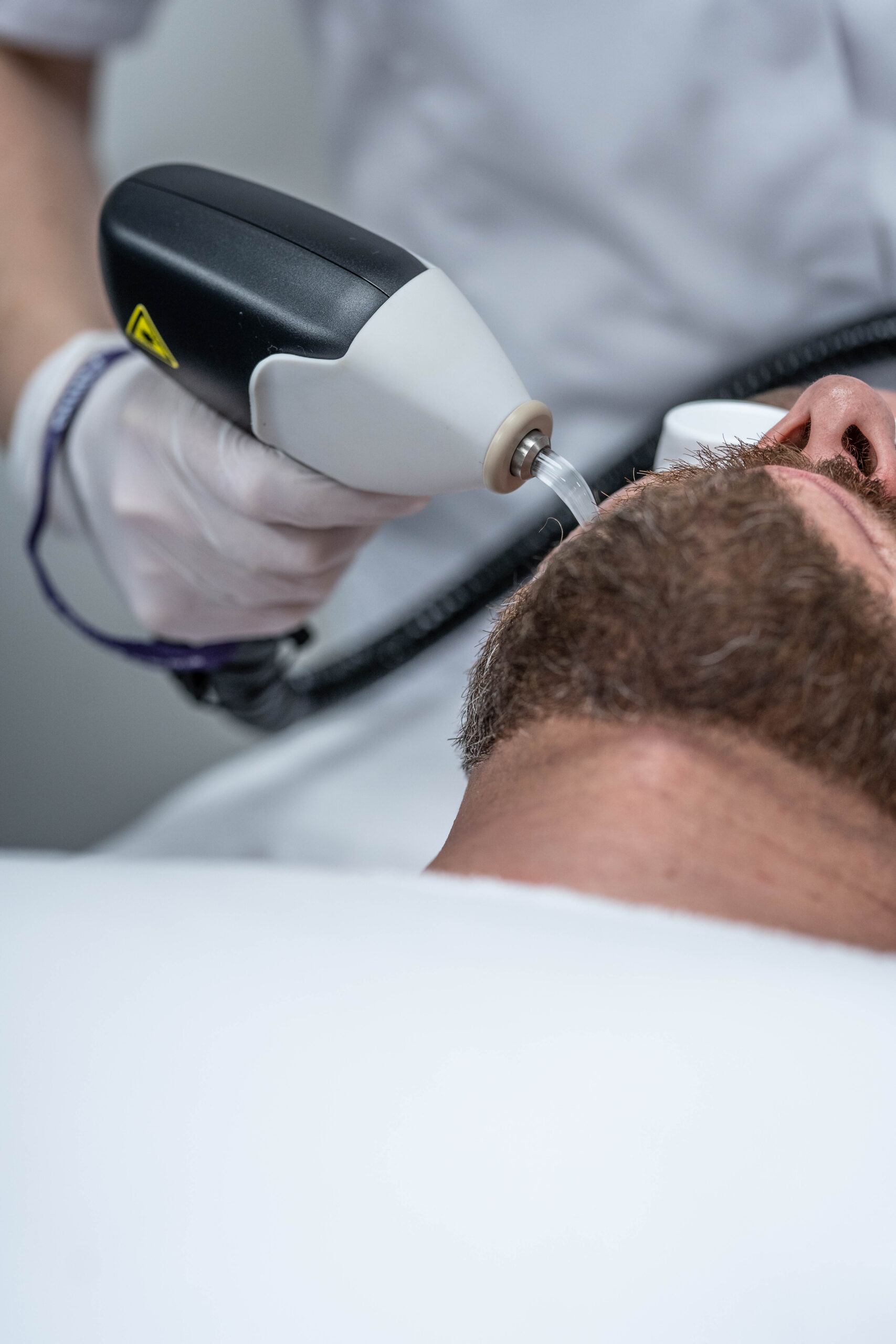 - De laserbehandeling : Met een gekoelde kop behandelen we het gebied gelijkmatig.